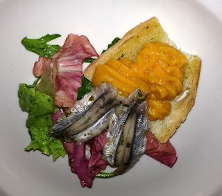 La scelta è caduta su questo Kabinett (secco) 2011 che avrei potuto bere anche fra 20 anni, comunque: si è presentato luminoso di colore giallo paglierino tendente al dorato con un naso inizialmente un po' chiuso (era forse troppo freddo).